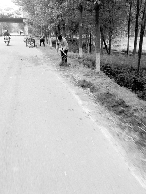 近期,在周项公路黄寨路口至郑埠口段,经常有人在公路两旁的路肩上挖蚯蚓。据说,蚯蚓晒干了可以卖给药材商。但是,这种行为也会造成两侧路肩水土流失,影响公路使用寿命。该谁管管?记者 李寒 摄