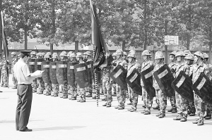 6月4日上午,省军区、省政府联合工作组对驻周预备役408团应急分队进行年度整组检验。据了解,预备役408团应急分队用于应急维稳等。通过点验,检查编组落实情况和军事训练效果。图为驻周预备役408团应急分队正在进行演练。