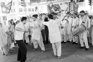 谢里夫第三次当选巴基斯坦总理 6月5日,在巴基斯坦木尔坦,巴基斯坦穆斯林联盟(谢里夫派)工作人员得知大选结果后跳舞庆祝。当日,巴基斯坦穆斯林联盟(谢里夫派)领导人纳瓦兹·谢里夫以244票当选为巴基斯坦新一届政府总理,这也是谢里夫第三次当选巴基斯坦总理。