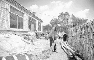 图③:事故现场周边村屯大部分居民生活基本恢复正常 6月4日,在位于事故现场下风口方向的江东村尹家窝棚屯,一名农民在打扫院子。记者在走访时了解到,虽然处在事故现场下风口方向的米沙子镇江东村等村屯一度因受氨气扩散的影响而临时疏散,但目前大部分居民的生活已基本恢复正常。