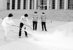 为提高干部职工的消防技能,周口市博物馆于近日组织全体员工进行了一场集中消防演练,更进一步掌握了消防安全知识。(记者 李寒 摄)