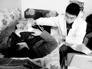 医务人员在平店乡敬老院为五保老人体检。日前,商水县计生、卫生、民政等部门积极组织,免费为全县农村五保老人、空巢老人进行了全面体检,送去了党和政府的关爱。
