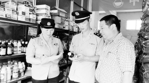 连日来,西华县工商局集中开展“红盾护农打假冒保夏种”专项执法行动,严查销售“三无”、假冒伪劣、商标侵权、虚假宣传等违法行为,保证广大农民“三夏”期间放心使用农资。图为该局执法人员在一家农资门店检查时的情景。 记者 张猛 摄