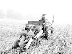 连日来,广大农民在麦收后利用现在好墒情,及时进行播种。图为一农民正在地里抢种玉米。(记者 孙安平摄)
