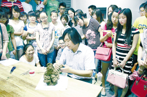 近日,河南省非物质文化遗产传承人张振福先生应邀来到周口师范学院,为美术学院师生带来一场泥塑艺术专题学术活动。讲座结束后,张先生现场示范了泥塑的基本制作过程,学生们纷纷上前观看学习。张振福边制作边解答学生的问题,精辟的解答和娴熟的技巧博得现场师生掌声不断。