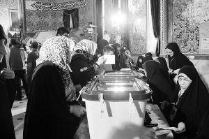 伊朗第11届总统选举开始投票 6月14日,一名伊朗妇女在首都德黑兰的一个投票站投票。伊朗第11届总统选举投票于当地时间14日上午8时开始,伊朗最高领袖哈梅内伊在设于德黑兰领袖府内的投票站投下首张选票。新华社发