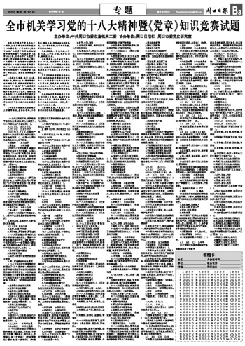 全市机关学习党的十八大精神暨《党章》知识竞赛试题