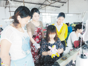 商水县舒庄乡大朱庄村返乡农民工正在学习布玩具加工技术。今年以来,商水县不仅向外输送6万多名技术型农民工,还使当地3万多名农村技术型劳力在家门口实现了就业。(乔连军 摄)