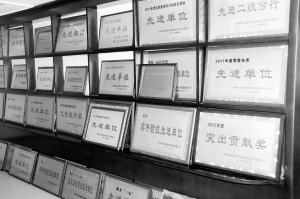 一进入该行办公大楼的大厅,一股文化气息便扑面而来,首先映入眼帘的是大厅中央墙壁上不停地滚动着企业文化标语的LED显示屏,大厅两侧分别树立着的四个橱窗与之相映生辉,走进电梯走廊,一个题为“我们是一家人”的巨幅喷绘便跃入视野,电梯对面更是一面文化墙,就连电梯的两扇门都被张贴了习近平主席“功崇唯志,业广唯勤”和李克强总理“改革贵在行动,喊破嗓子不如甩开膀子”的喷绘标语,使过往行人举手投足间即能感受着浓厚的文化氛围。在各个楼层,一幅幅企业文化理念的画框让人流连忘返,意犹未尽。