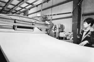 项城市秣陵镇信德鞋材公司员工正在生产线上作业。该镇大力扶持民营企业发展,除为企业提供优惠政策外,还提供技术、市场信息服务,使企业快速壮大。据了解,该企业吸纳了300多名农民工在家门口就业。(赵献伟 摄)