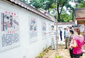 昨日,鹿邑县贾滩乡西高庄村文化大院里,村民们在听讲“二十四孝”图解。在县文化部门帮扶指导下,鹿邑县乡村文化大院逐步成为群众接受教育培训、交流致富信息和文化休闲的场所。(王广丰 蒋保庆 摄)