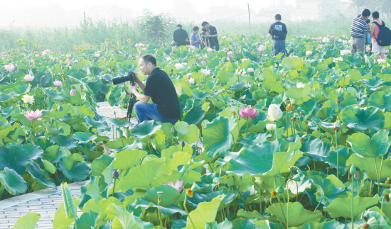 昨日清晨,微风掠过淮阳万亩龙湖,荷香阵阵。摄影爱好者一大早便来到精品荷花园区,捕捉美的瞬间。据悉,今年淮阳荷花节定于7月8日至8月8日。(记者 王映 摄)