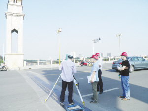 市审计局创新审计方法,狠抓关键环节,加大对政府投资工程的审计力度,确保财政性资金投入的安全有效, 为政府建设资金投入走向提供了有力保障。图为审计人员在市八一路跨沙颍河桥梁竣工决算审计现场进行现场勘查审计。(李巴卡 摄)