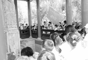 暑期来临,鹿邑县旅游部门积极号召各旅游景区、宾馆酒店、旅行社及相关部门推行“旅游惠民”措施,开展“微笑服务活动”,增强服务功能,提升服务质量,更好地方便广大师生开展夏令营、游家乡学传统等各种文体活动。图为近日太清宫景区迎来了淮阳县130多名留守儿童。