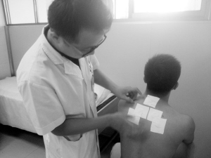 工作人员正在进行穴位贴敷