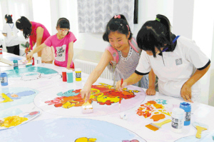 近日,由北京市东城区青少年科技馆主办的中小学生动漫文化节在中央工艺美术学院附中举行,全区1500余名中小学生参与了动漫体验。图为学生参加百米动漫长卷绘制。鲍效农 摄