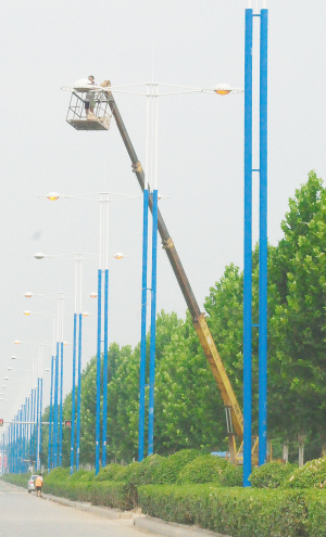 昨日,市东新区城管局技术人员对辖区内的路灯进行维护。为确保行人和车辆夏夜安全出行,该局定期组织人员对路灯进行集中清洗、检修和调试。