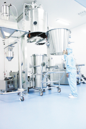 河南美华制药有限公司是项城市重点招商引资项目,总投资3.5亿元,一期工程已投入1.5亿元,预计8月份投产试运营,届时可安置员工300多人。图为工人正在调试设备。(张永久 摄)
