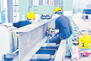 周口恒泰钢构公司是一家集设计、生产、工程等为一体的专业公司,项目投产后年产值5.4亿元,年新增利税9200万元,增就业岗位近400个。图为该公司员工正在工作。(记者 沈湛 摄)