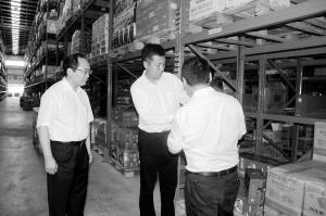 为加大支持地方经济力度,今年以来,周口农行围绕全市各类大中小企业客户,行长、主管行长带队,实行“总对总”源头对接,并根据企业经营特点,实施信贷、结算、对公理财、综合融资等“一揽子”服务措施,有效提升了金融服务水平。截至6月底,该行各项贷款较年初新增5.6亿元。图为该行行长陪同省行领导深入企业调研。郭振华 摄