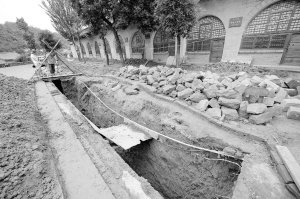 7月29日,工作人员在延安西北局革命旧址内维修一段倒塌的围墙。7月初以来,接连的强降雨对延安地区的部分革命旧址造成侵害。在中共中央西北局旧址,目前已出现三处较大的山体滑坡,围墙、护坡等发生多处裂缝和坍塌,旧址窑洞发生不同程度的漏水和裂缝,受损窑洞数量已达50孔,部分窑洞存在随时垮塌的可能。新华社记者 李一博 摄