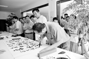 本报讯 日前,全市文艺工作现场会在川汇区召开。期间,全体与会人员实地观摩了川汇区“教您一招”文艺培训基地、关帝上城文化综合体项目、周家口木版年画传承基地,先后观看了戏曲、舞蹈、器乐、声乐、武术等文艺表演,参观了关帝上城茶叶市场、古玩字画文化市场、广文华夏3D影院、周口名小吃一条街、福建红木第一楼、关帝庙旅游文化区等,欣赏了国家级非物质文化遗产传承人夏明月老先生制作木版年画的精湛技艺。与会人员对川汇区民间文艺的保护和传承工作给予了高度评价。