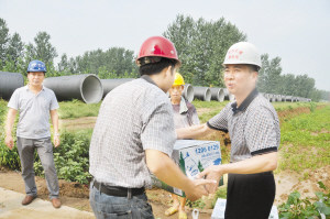 自去年12月份开工以来,市南水北调配套工程现已开挖管沟23.5公里、安装管道9.5公里。目前,该工程各项工作正有条不紊推进。图为市南水北调配套工程建设管理局组织人员慰问一线职工。