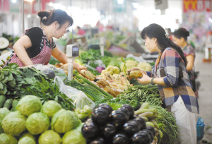8月6日,市民在农贸市场选购蔬菜。据商务部8月6日发布的监测数据显示,7月29日至8月4日,全国36个大中城市食用农产品价格连续第三周呈回升态势。(新华社发)