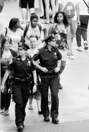 ▲由于担心可能发生恐怖袭击,美国国务院日前将位于中东和北非地区的领事馆和大使馆关闭期限延长至8月10日。同时,美国国土安全部也提升了机场、火车站等国内交通枢纽的警戒级别,加强巡逻警力,强化安检措施。图为8月7日,两名警察在美国纽约时报广场执勤。新华社记者 王雷 摄