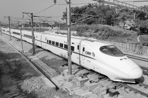 “和谐号”动车组广西试运行 8月11日,“和谐号”动车组列车在广西桂林灵川县境内的衡(阳)柳(州)铁路上试运行。当日上午,广西首批“和谐号”动车组列车从广西灵川县发车,在湖南衡阳至广西柳州的衡柳铁路灵川至永州段试运行。此次试运行的车型标称时速为200公里,最高运营时速250公里。新华社发