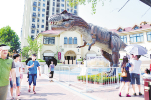 本报讯 8月17日,周口建业森林半岛销售中心人声鼎沸,热闹非凡。在气氛热烈的建业森林半岛外广场上,首届仿真恐龙体验展梦幻开园,六只栩栩如生的仿真恐龙“空降”这里,为周口市民上演一场现实版的“侏罗纪公园”,吸引了近600名家长与孩子一同前来参观。