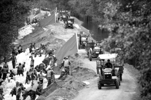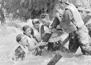 图①:驻黑部队近两万兵力奋战三江抗洪一线 沈阳军区16集团军某装甲团官兵在大庆市肇源县莲花乡洼口子屯段打桩加固加高松花江大堤(8月19日)。连日来,驻黑部队连续出动兵力奔赴三江流域抗洪抢险,截至目前已有近两万名解放军和武警官兵、民兵预备役人员奋战抗洪一线,增配的储备冲锋舟、橡皮舟、救生衣、救生圈、植桩机等三万余件抗洪物资也运达灾区。