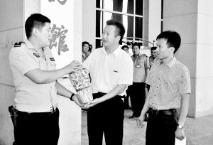 8月23日下午,市博物馆迎来了两位“特殊客人”,他们是来捐赠文物的太昊路派出所警务人员。据介绍,当日上午,几名施工人员在市区港口物流园区港二路施工现场挖出金代梅瓶一只,由于不知道怎么处理,交由辖区警员。为了给文物找到一个好的归宿,警官们联系到了市博物馆。博物馆负责人介绍,此类文物在我市有少量发现,这只梅瓶保存完好,有一定的学术研究价值。随后,博物馆为其出具了收藏证书。这只造型端庄、花纹精美的梅瓶不日将与广大市民见面。(记者 沈湛 摄)