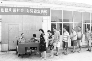 近日,黄泛区农场二分场组织干部职工为今年考入大学一本的贫困学生曹顺滨捐款,短短一个小时,个人、集体捐款就达8970元,保证了曹顺滨顺利入学。(钱国顺 宁志广 摄)