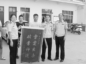 8月20日,受害人将上书“雷霆出击,破案神速”的锦旗送到了西华县城关派出所,以表谢意。近日,西华县城关所针对辖区内网吧连续被盗案件,通过蹲点守候,现场将犯罪嫌疑人抓获。