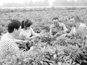连日来,扶沟县练寺镇组织70余名党员干部深入田间地头,帮助农民解决生产生活中的热点难点问题。图为该镇干部在严村向农民传授小辣椒中后期管理技术。 (陈奎 摄)