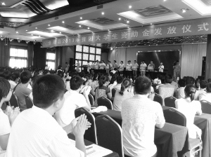 本报讯 (记者 侯俊豫 通讯员 刘宏伟 文/图)“感谢爱心人士的帮助,让我有机会圆未来4年的大学梦。我将加倍努力,学有所成,回报社会。”8月21日上午,在淮阳县2013年贫困大学生资助金发放仪式上,一名考取河师大的朱集乡宋营村的单亲家庭大学生李恩会激动异常。