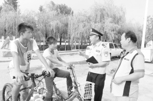 “开学啦,今年暑假,我们辖区5000多人中没有发生一起溺水事件。这主要得益于假期里我们广泛开展了青少年防溺水宣传教育活动。”9月1日上午,市公安局金海路派出所联盟新城警务室民警汪勇高兴地说。暑假期间,汪勇在辖区广泛开展防溺水宣传教育,提高青少年儿童防溺水的自觉性,加强了家长及儿童防溺水的安全意识。图为汪勇在给辖区青少年及家长宣传防溺水的镜头。(任君箫 王海生 摄)