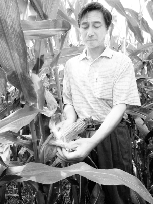 昨日,一农民在察看玉米。据了解,为确保玉米等秋季农作物丰收,我市各级政府积极组织农技人员深入田间地头,指导农户浇灌、防治病虫害等田间管理,由于措施得当,当前全市秋粮作物长势喜人,丰收在望。(记者 孙安平 摄)
