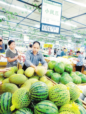 昨日,一市民正在超市挑选瓜果。“双节”期间,市场又进入交易旺盛时期。为丰富市民“菜篮子”、“果盘子”,我市采取各种有效措施,指导商家组织货源,稳定价格,全力保障市场供应。