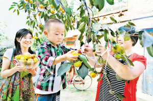 昨日上午,商水县化河乡宁楼村群众正在采摘柿子。该县大力鼓励当地群众种植柿子、葡萄等经济树种,发展特色经济,增加农民收入。