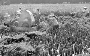 9月15日,湖北省宣恩县珠山镇封口坝村农民在田间收割水稻。近日,湖北省恩施土家族苗族自治州宣恩县农民加紧抢收玉米、水稻等农作物,确保颗粒归仓。中秋节前后,当地农户将基本完成农作物的收割、晾晒和归仓。 新华社发