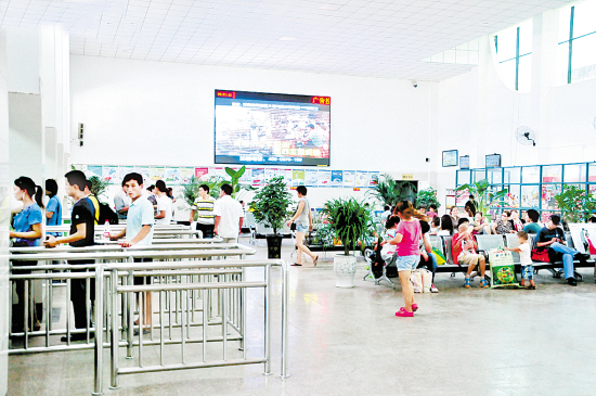 9月16日,周口中心汽车站候车大厅人来人往。经过改造后的中心车站候车大厅,鲜花飘香,整洁有序,为来往旅客营造了一个舒心环境。(记者 沈湛 摄)