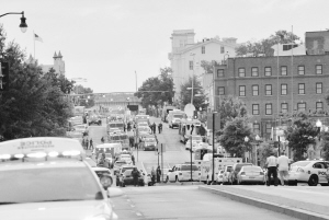 9月16日,在美国首都华盛顿美国海军海洋系统司令部大院外,警察封锁街道。新华社发