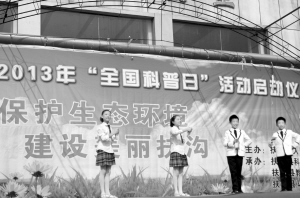 昨日,扶沟县科普活动启动仪式在该县人民会堂举行。此次活动旨在号召社会各界,充分利用优势资源,为保护生态环境,建设美丽扶沟作贡献。图为参与单位在启动仪式上表演节目。