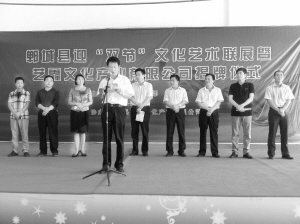 9月16日,由郸城县委宣传部和县文联举办的迎“双节”文化艺术联展暨艺鑫文化产业有限公司揭牌仪式在县文化艺术交流中心举行。此次迎“双节”庆典活动开设了书法、美术、摄影、泥塑、古玩五大展区,全方位展示了全县文化艺术百花齐放、亮点纷呈的现状。图为揭牌仪式现场。(记者 卢好亮 通讯员 丁宇涛 摄)