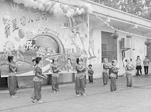 为庆祝第29个教师节,郸城县开展“廉洁过节、快乐学生”活动,加强节俭爱岗教育,让教师和学生过一个开心快乐的节日。图为新星幼儿园的孩子们在表演节目,向老师送上节日的祝福。