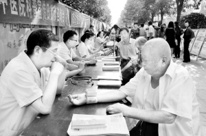 中秋节期间,我市数家医疗机构走上街头,为市民提供免费的体检与咨询服务。(记者 王亚辉 摄)