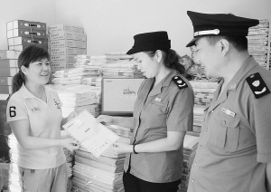 近年来,扶沟县工商局积极引导农民通过注册农副产品商标推介销售土特产品,提高了农副产品的市场竞争力,促进了农民的增收。图为该局工作人员把商标注册登记证书送给土布生产负责人翟梦雪。(记者 王泉林 通讯员 卢付昌 姜勇 摄)