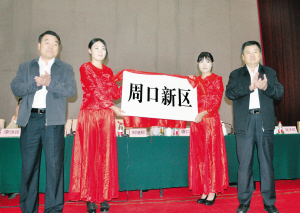 图为市委书记徐光、市长刘继标为周口新区揭牌。(记者 王映摄)